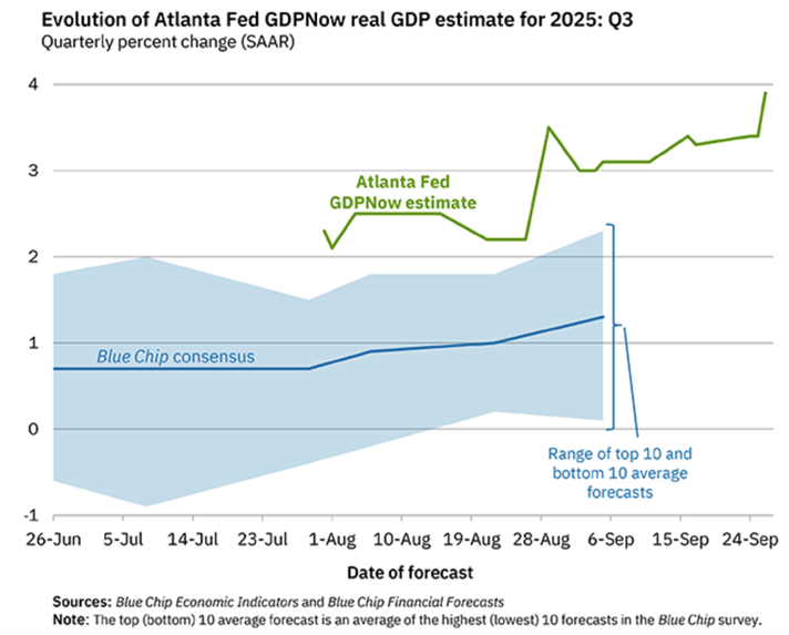 Fonte: Federal Reserve Bank of Atlanta — GDPNow, com dados do Blue Chip Economic Indicators e Blue Chip Financial Forecasts.